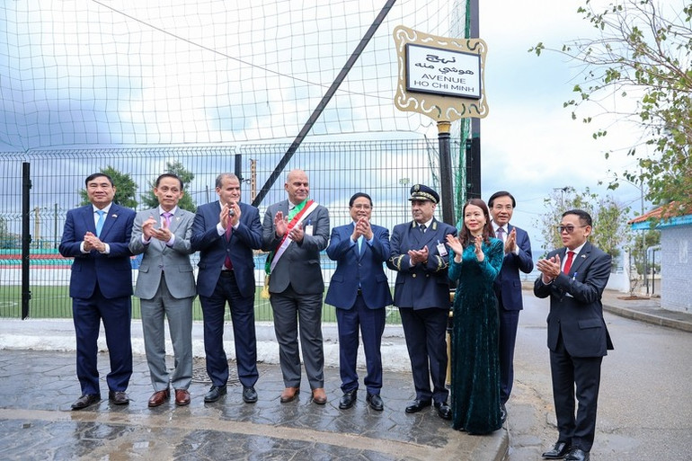 Thủ tướng Phạm Minh Chính và Phu nhân cùng Đoàn đại biểu cấp cao Việt Nam thăm Đại lộ Hồ Chí Minh tại Thủ đô Algiers và khánh thành Bia Tưởng niệm về thân thế, sự nghiệp Chủ tịch Hồ Chí Minh. (Ảnh: VGP/NHẬT BẮC)