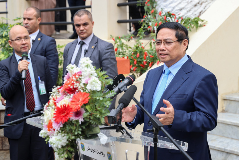 Phát biểu ý kiến tại buổi lễ, Thủ tướng Phạm Minh Chính nhấn mạnh, hai nước có một quá khứ quan hệ rất hào hùng và một tương lai rất tươi sáng. Chuyến thăm lần này đã thống nhất nâng cấp quan hệ lên Đối tác chiến lược cũng là cột mốc son quan trọng trong mối quan hệ, phát triển tình hữu nghị hai đất nước Việt Nam và Algeria.