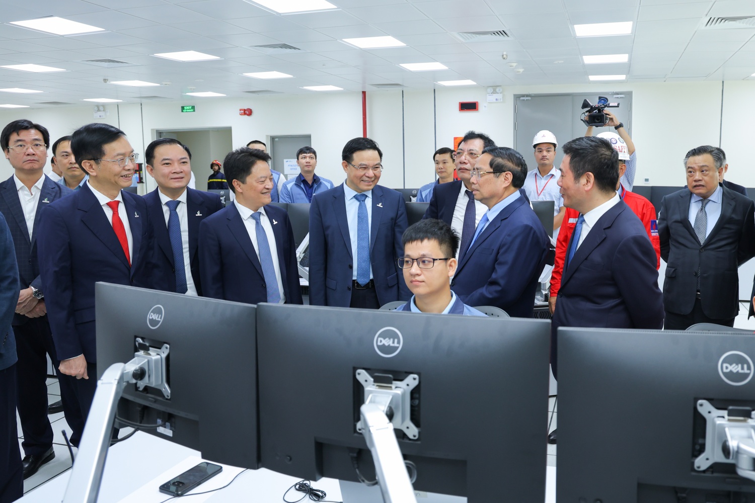 Thủ tướng Phạm Minh Chính cùng các đại biểu tham quan phòng điều khiển trung tâm Nhà máy điện Nhơn Trạch 3 và Nhơn Trạch 4