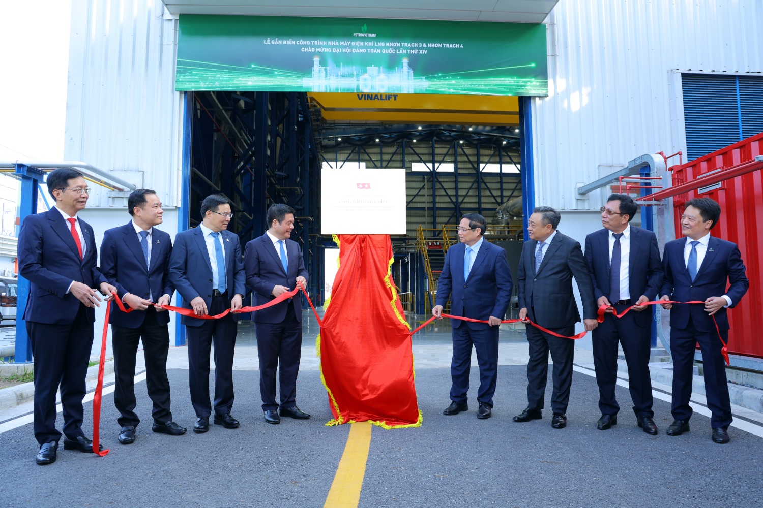 Thủ tướng Phạm Minh Chính cùng lãnh đạo Đảng, Nhà nước, Petrovietnam, PV Power thực hiện nghi thức gắn biển công trình chào mừng Đại hội Đảng toàn quốc lần thứ XIV