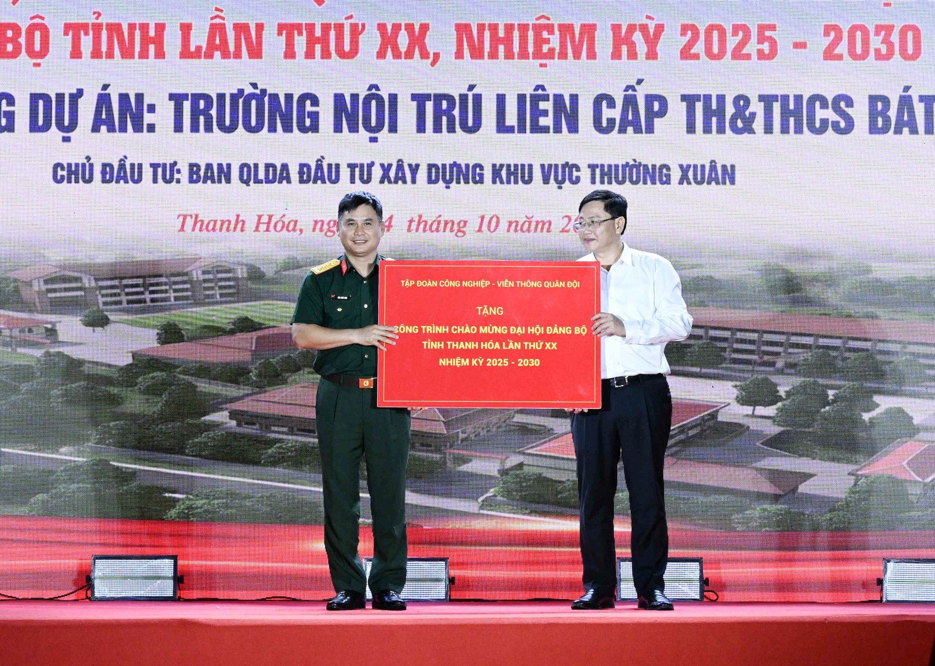 Tập đoàn Công nghiệp-Viễn thông Quân đội trao tặng kinh phí góp phần xây dựng dự án trường nội trú liên cấp tiểu học-trung học cơ sở Bát Mọt.