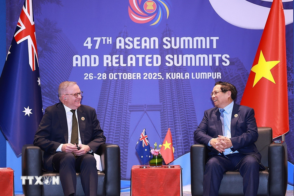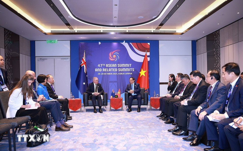 Thủ tướng Phạm Minh Chính hội kiến Thủ tướng Australia Anthony Albanese. (Ảnh: Dương Giang/TTXVN)