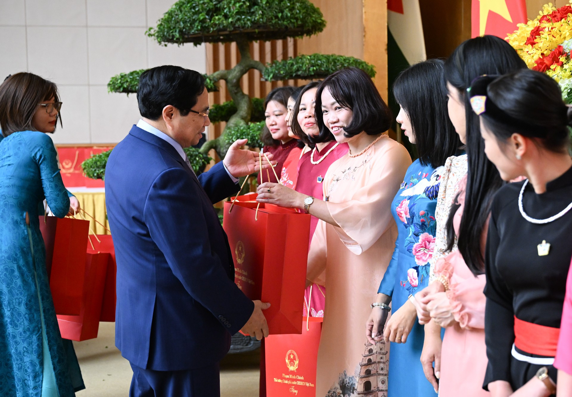 Thủ tướng Phạm Minh Chính trao quà, tặng các nhà giáo tiêu biểu.