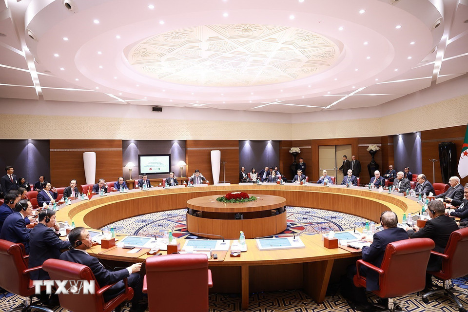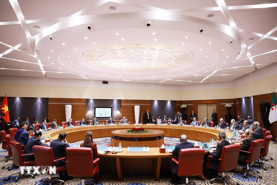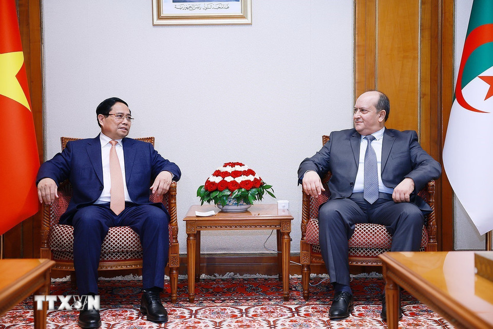 Thủ tướng Phạm Minh Chính hội đàm với Thủ tướng Cộng hòa Algeria Dân chủ Nhân dân Sifi Ghrieb. (Ảnh: Dương Giang/TTXVN)