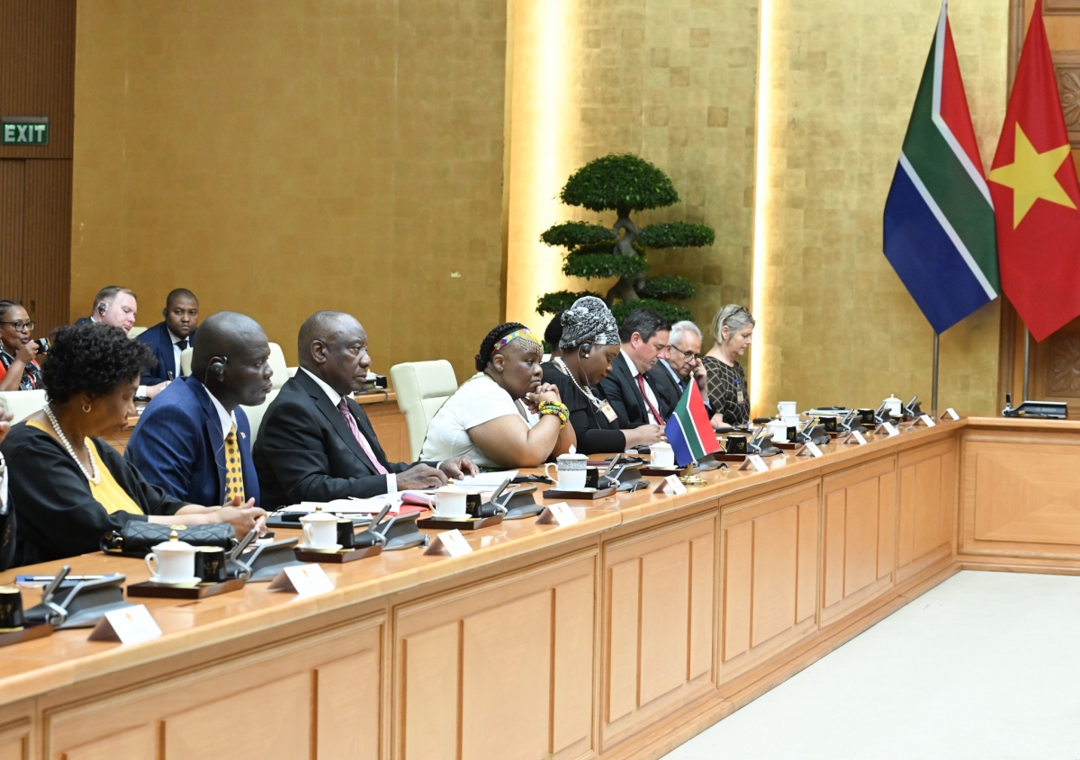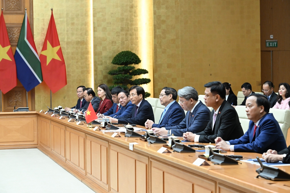 Bày tỏ vui mừng trước những bước phát triển hết sức tốt đẹp trong quan hệ hai nước trên nhiều lĩnh vực với sự tin cậy cao và Nam Phi liên tục là đối tác thương mại lớn nhất của Việt Nam tại châu Phi, Thủ tướng khẳng định hai nước luôn là bạn bè tốt, đối tác tốt, luôn ủng hộ và giúp đỡ lẫn nhau và vui mừng khi cả hai nước hiện đều có vai trò và vị thế đang gia tăng trên trường quốc tế; hai nước có những thế mạnh có thể bổ sung cho nhau cùng phát triển như chuyển đổi xanh, chuyển đổi số, kinh tế sáng tạo, năng lượng tái tạo, truyền thông, chống biến đổi khí hậu; đề nghị Nam Phi ủng hộ Việt Nam sớm khởi động đàm phán Hiệp định Thương mại tự do (FTA) giữa Việt Nam với Liên minh thuế quan Nam phần châu Phi (SACU).