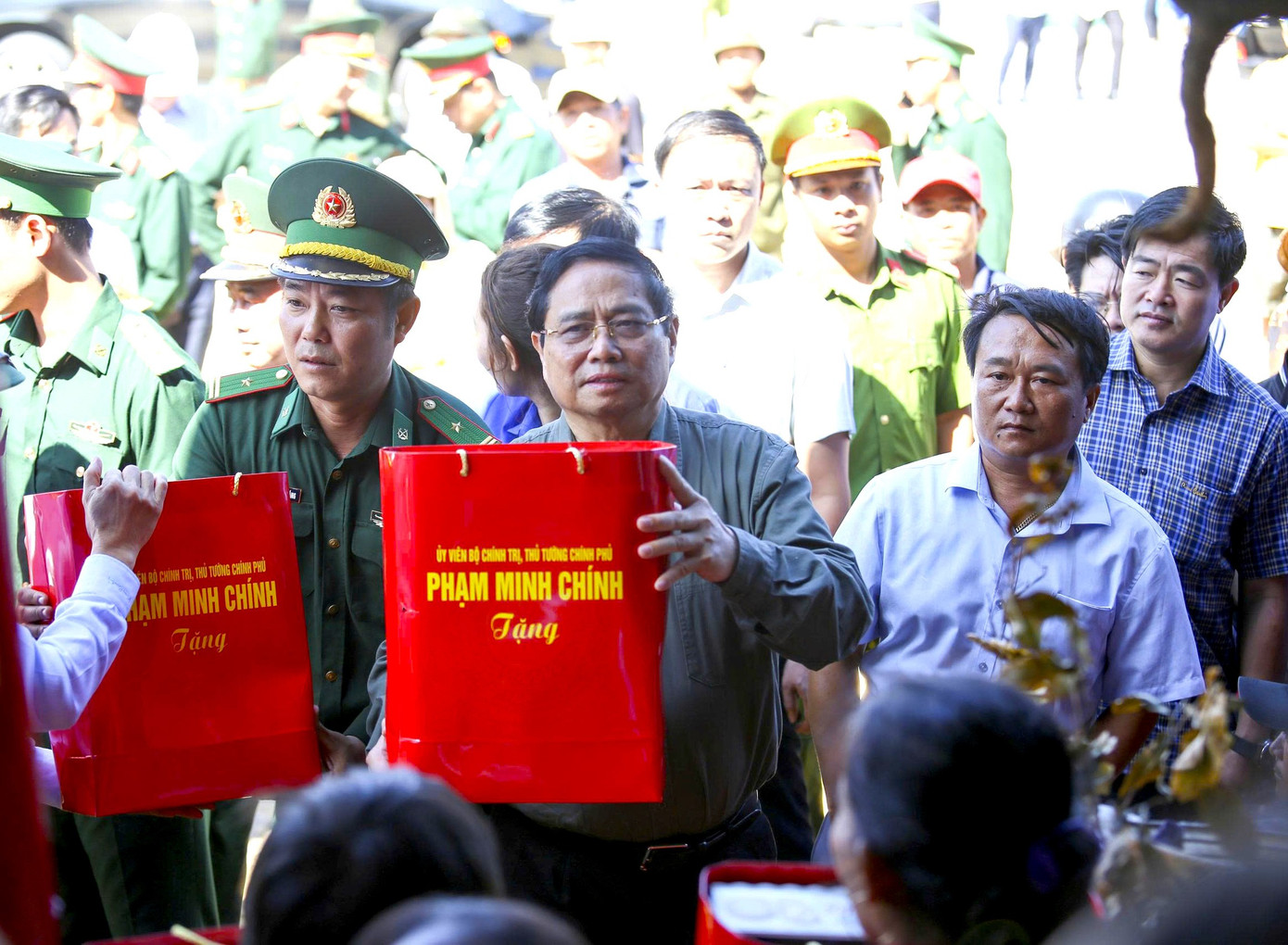 Thủ tướng Chính phủ Phạm Minh Chính tặng quà cho bà con bị thiệt hại do bão gây ra tại Gia Lai.