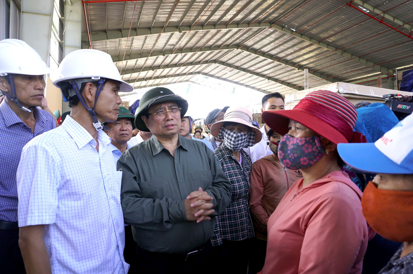 Thủ tướng cùng đoàn công tác đến kiểm tra tình hình thiệt hại các doanh nghiệp trong Khu Kinh tế Nhơn Hội.