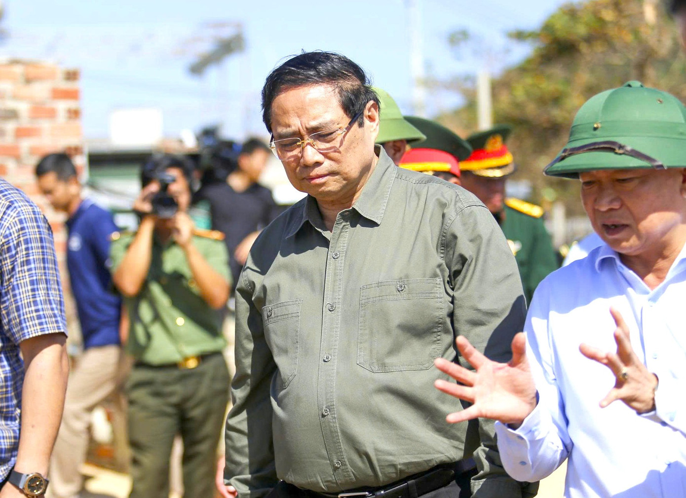 Tiếp tục chuyến công tác tại Gia Lai, Thủ tướng Chính phủ Phạm Minh Chính cùng đoàn công tác đã đến kiểm tra tình hình thiệt hại, khắc phục hậu quả bão tại xã Đề Gi.