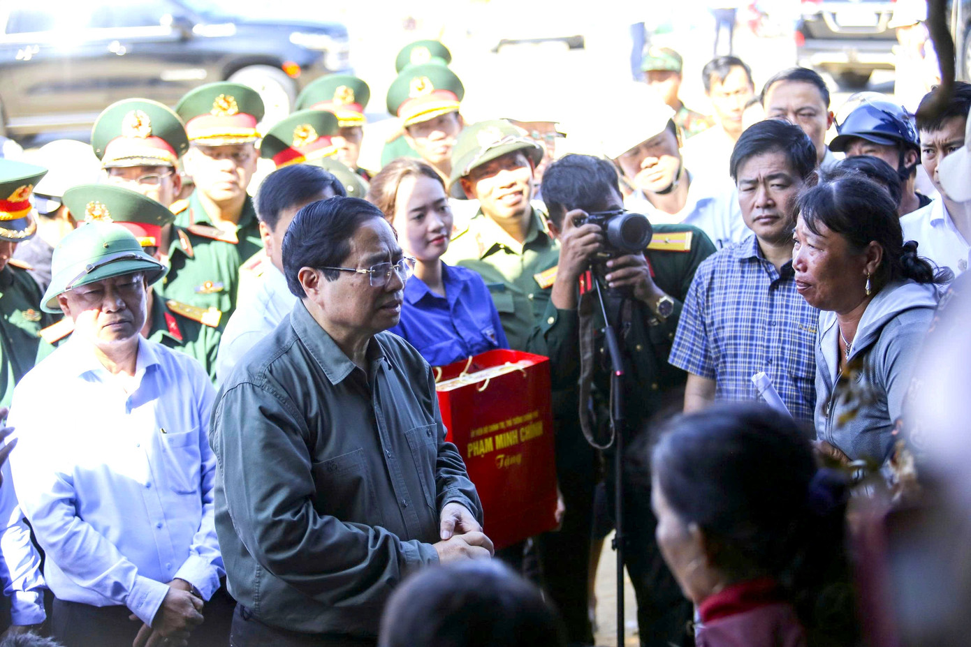 Thủ tướng Phạm Minh Chính chia sẻ, động viên bà con cố gắng vượt qua những khó khăn do bão, đồng thời chỉ đạo chính quyền địa phương chăm lo cho người dân.