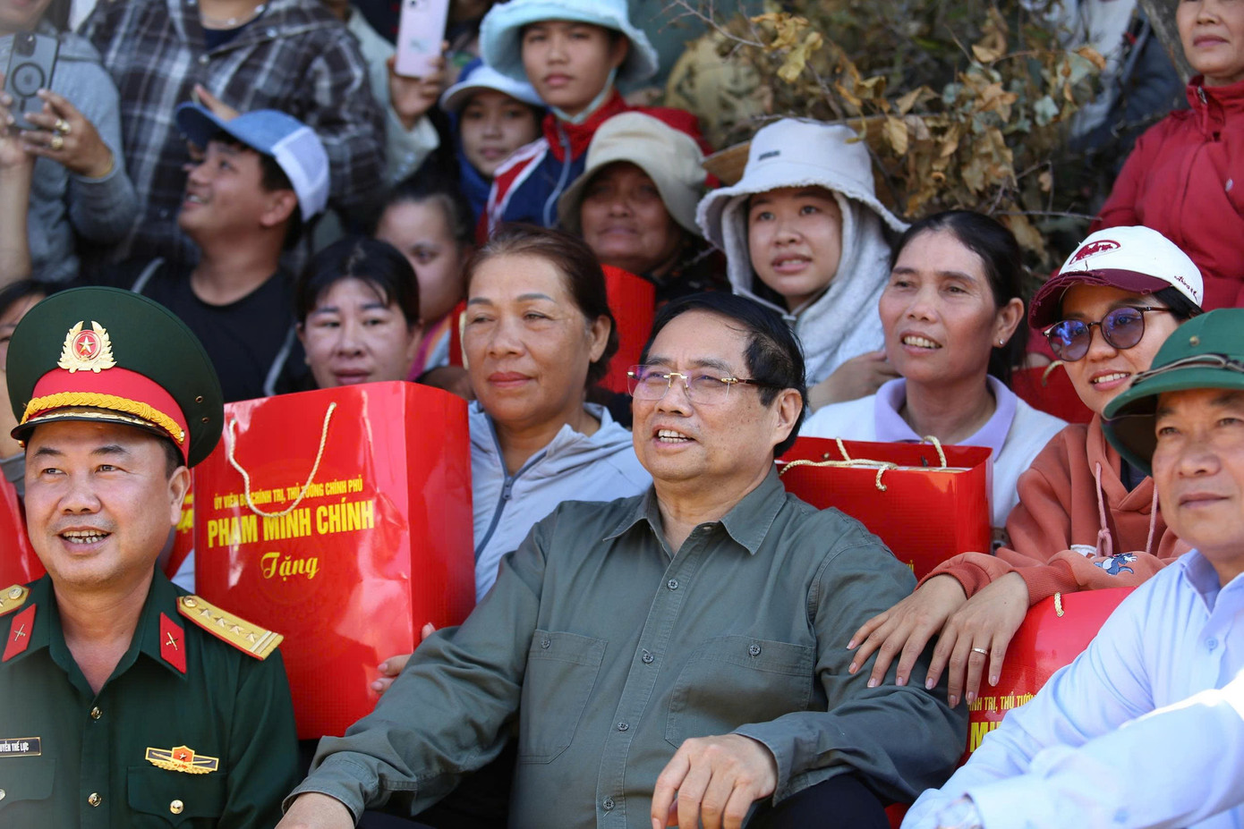Thủ tướng cùng đoàn công tác chụp hình kỷ niệm với người dân.