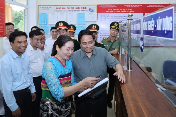 Thủ tướng kiểm tra trung tâm phục vụ hành chính công tại xã miền núi Thanh Hóa. Ảnh: VGP