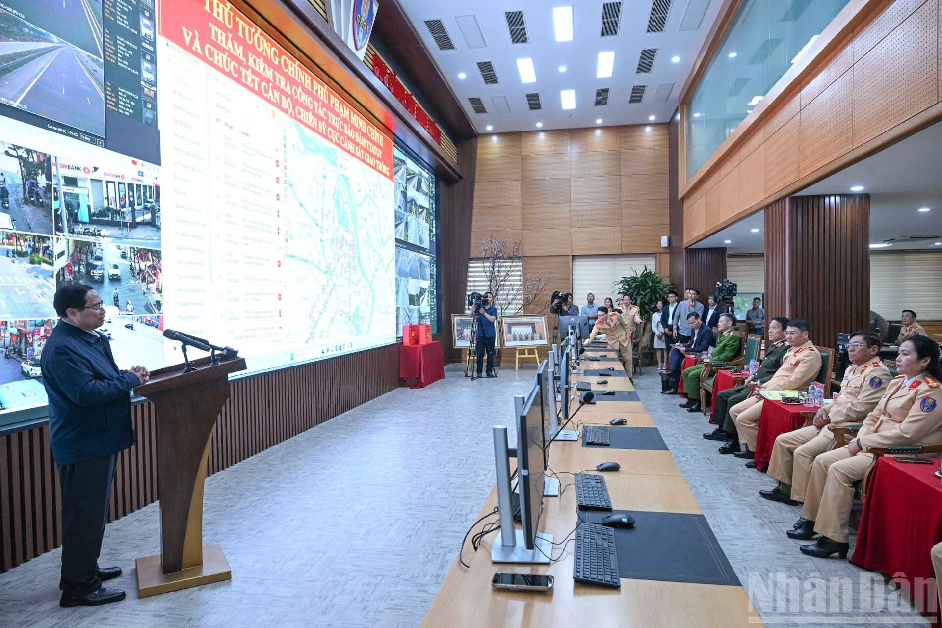 Thủ tướng Phạm Minh Chính đến thăm, chúc Tết và kiểm tra công tác ứng trực tại Cục Cảnh sát giao thông.