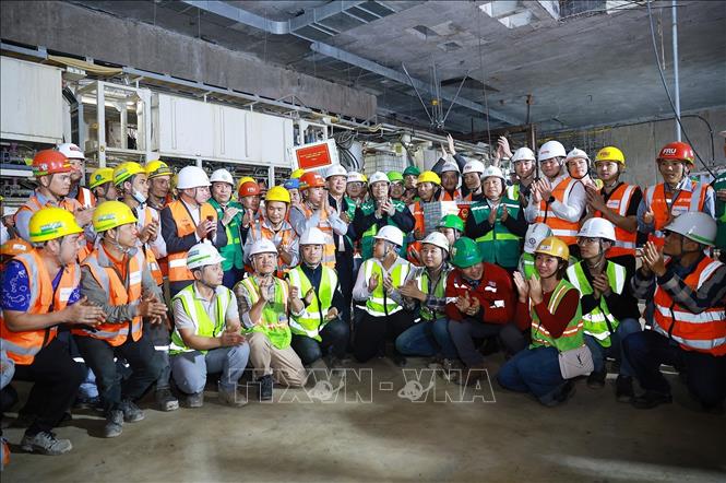 Thủ tướng Phạm Minh Chính kiểm tra tiến độ thi công Dự án tuyến đường sắt đô thị số 3, đoạn Nhổn-Ga Hà Nội. Ảnh: Dương Giang/TTXVN