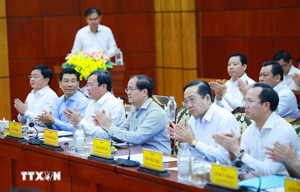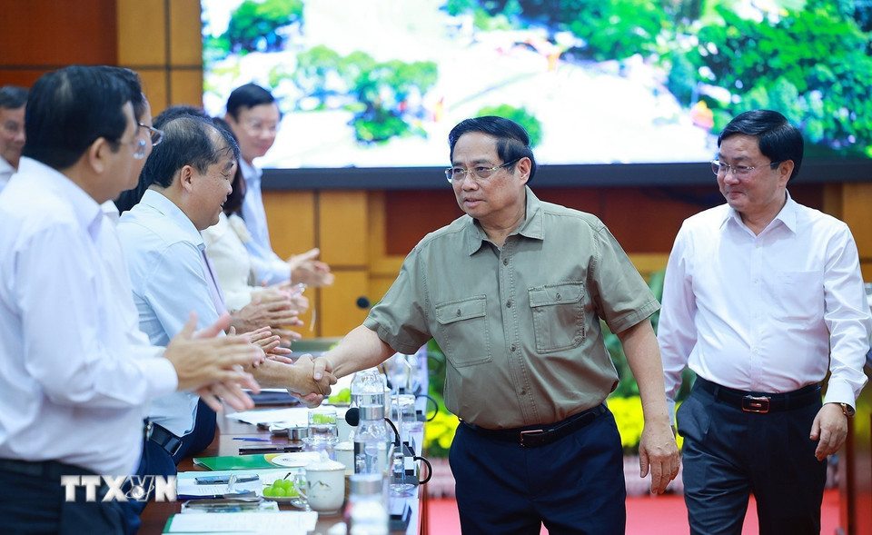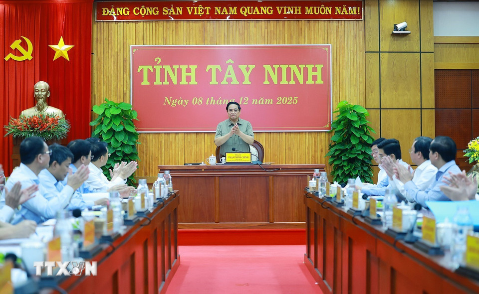 Thủ tướng Phạm Minh Chính làm việc với Ban Thường vụ Tỉnh ủy Tây Ninh. (Ảnh: Dương Giang/TTXVN)