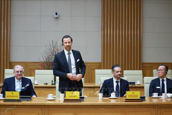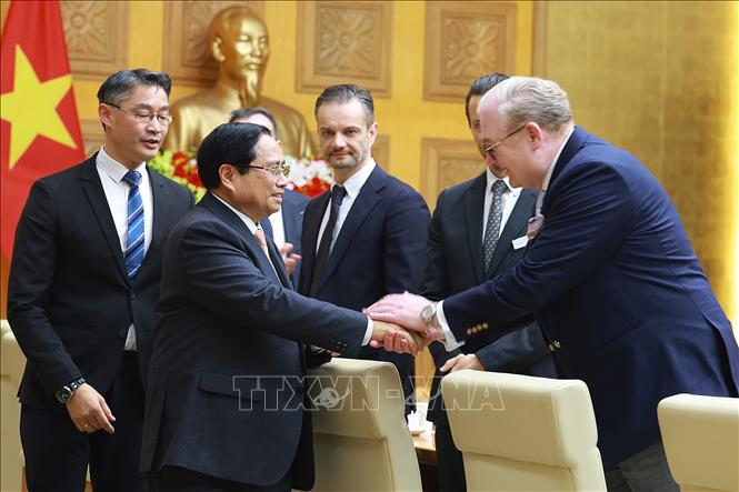 Thủ tướng Phạm Minh Chính tiếp các doanh nghiệp Thụy Sỹ và châu Âu. Ảnh: Dương Giang/TTXVN