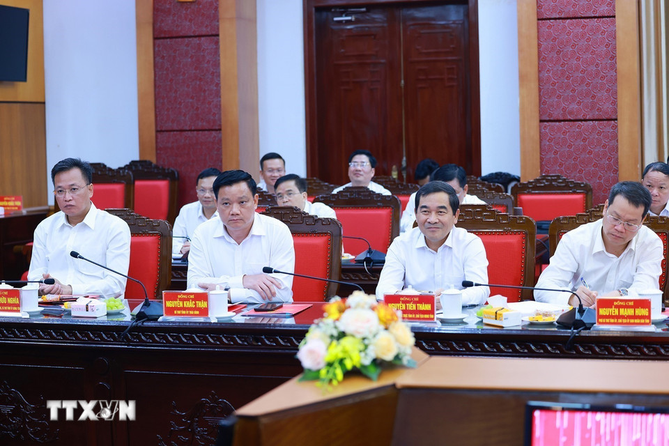 Lãnh đạo tỉnh Thái Bình tham dự buổi làm việc. (Ảnh: Dương Giang/TTXVN)