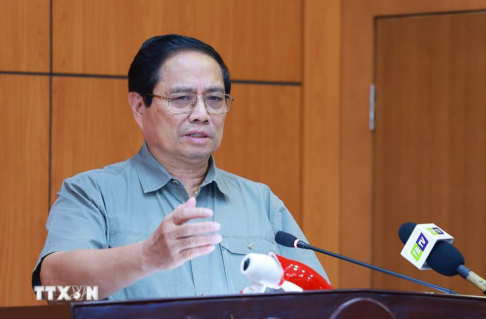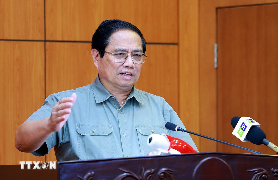 Thủ tướng Phạm Minh Chính kết luận buổi làm việc với Ban Thường vụ tỉnh ủy Thái Bình. (Ảnh: Dương Giang/TTXVN)