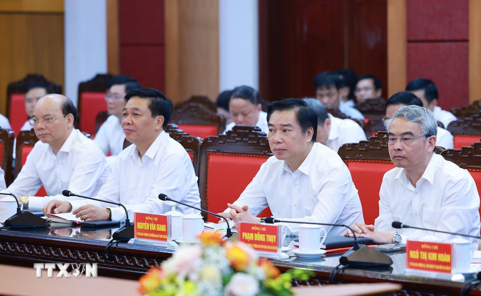 Thủ tướng Phạm Minh Chính chủ trì làm việc với Ban Thường vụ tỉnh ủy Thái Bình về tình hình phát triển kinh tế-xã hội. (Ảnh: Dương Giang/TTXVN)