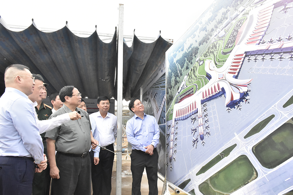 Thủ tướng Chính phủ Phạm Minh Chính kiểm tra tiến độ dự án đầu tư mở rộng Cảng hàng không quốc tế Phú Quốc
