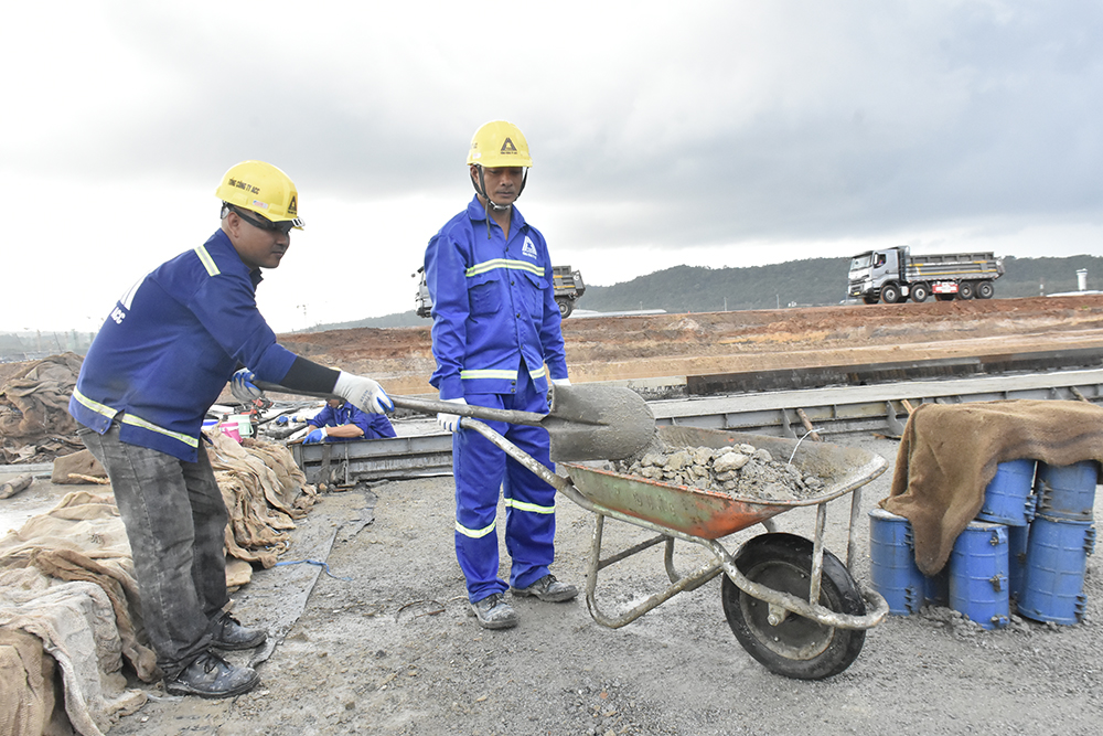 Công nhân thi công tại dự án đầu tư mở rộng Cảng hàng không quốc tế Phú Quốc