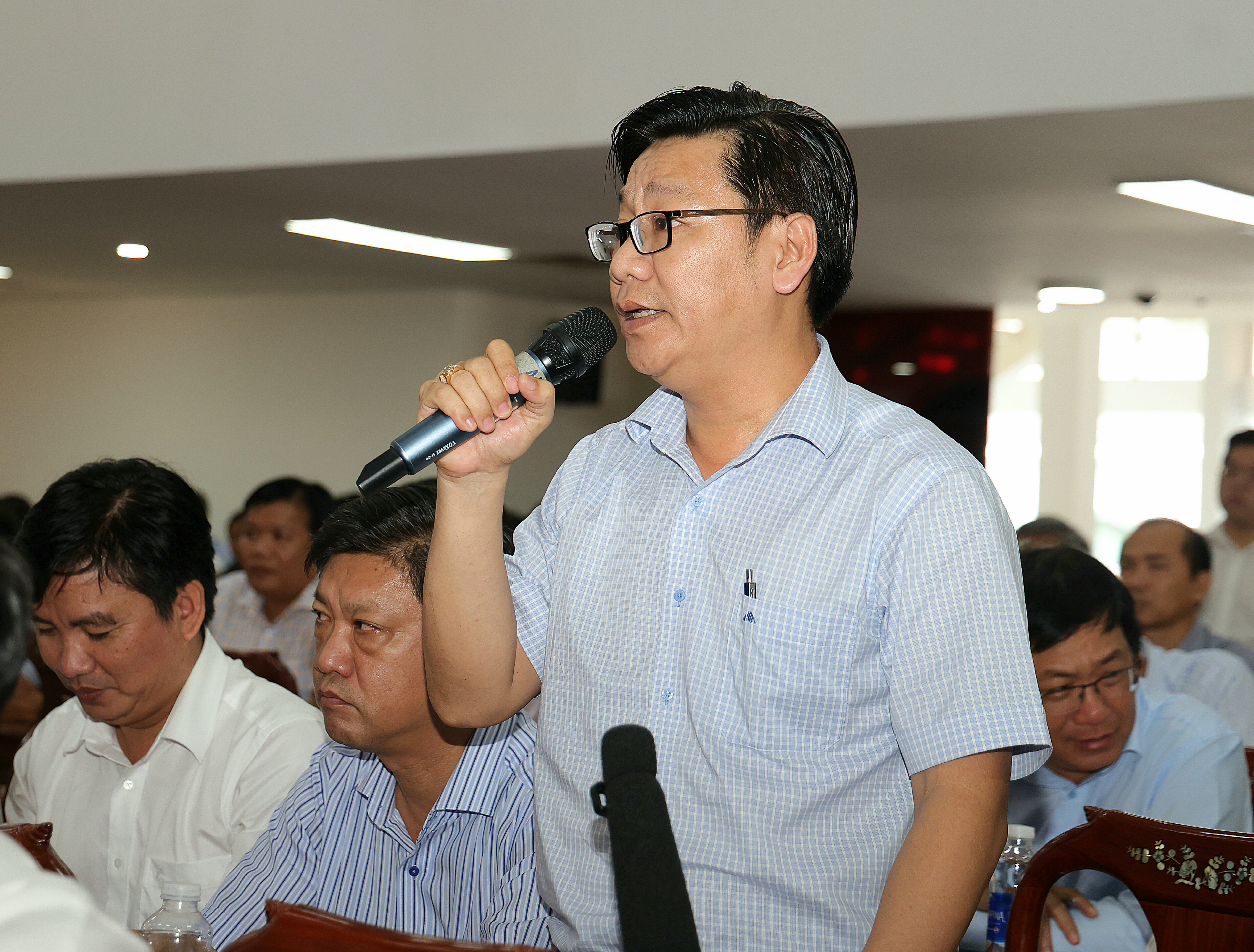 Cử tri phát biểu ý kiến tại buổi tiếp xúc