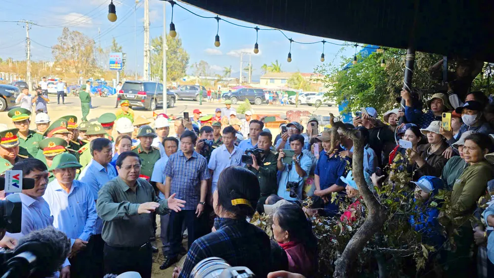 Thủ tướng Phạm Minh Chính thăm hỏi, động viên, chia sẻ với người dân bị thiệt hại do bão số 13 tại xã Đề Gi, tỉnh Gia Lai.