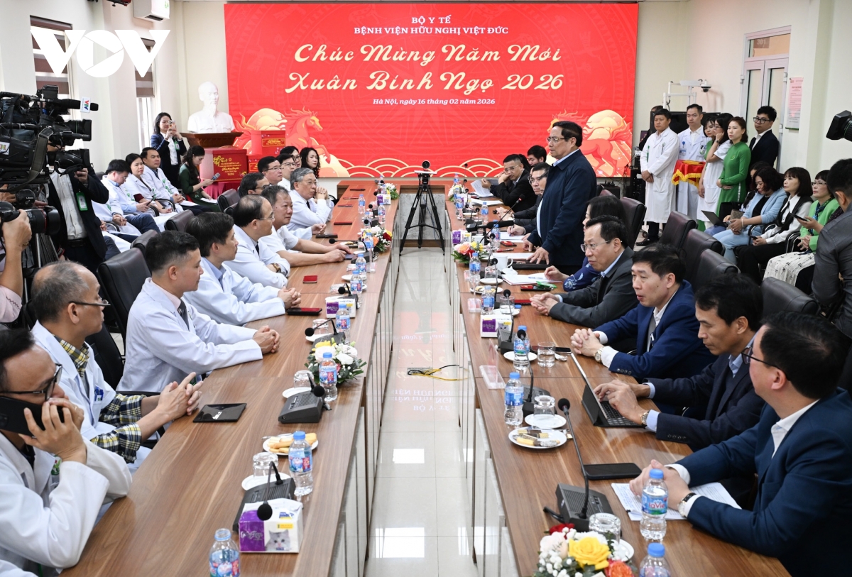 Cũng trong sáng nay, Thủ tướng Phạm Minh Chính thăm, chúc Tết cán bộ, y bác sĩ, bệnh nhân và kiểm tra công tác phục vụ người bệnh trong dịp Tết Nguyên đán Bệnh viện Hữu nghị Việt Đức.