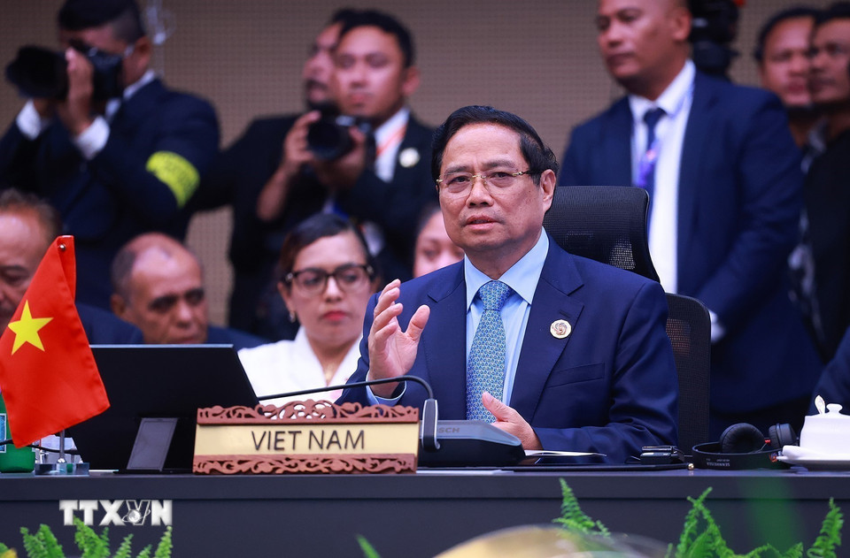 Thủ tướng Phạm Minh Chính tham dự và phát biểu tại Hội nghị Cấp cao ASEAN-Nhật Bản lần thứ 28. (Ảnh: Dương Giang/TTXVN)