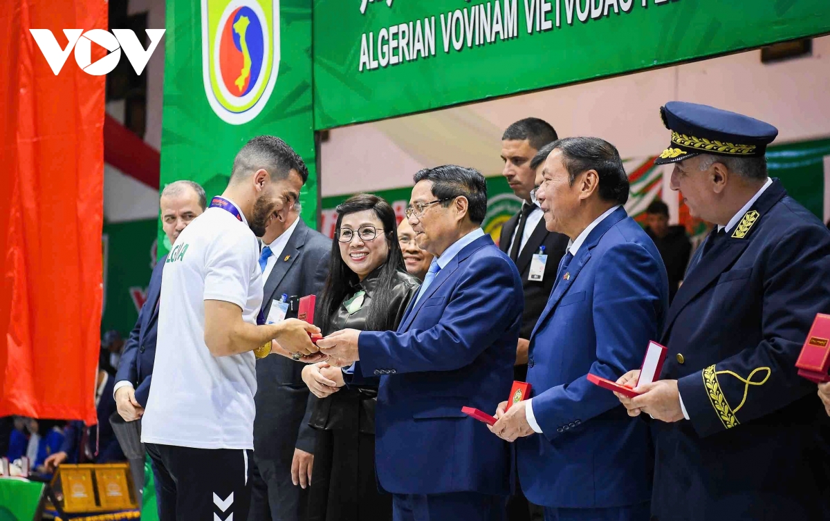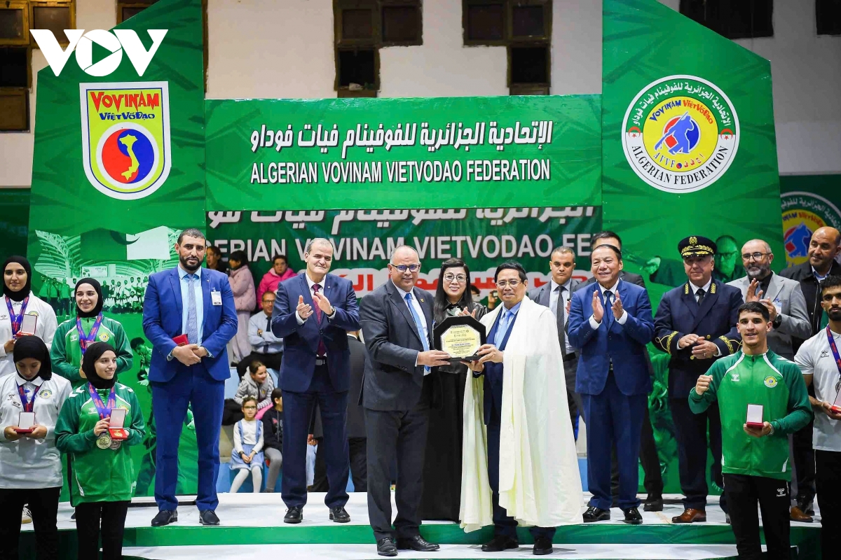 Dự khán buổi biểu diễn Vovinam của Đội tuyển quốc gia Vovinam Algeria và các vận động viên của Liên đoàn Vovinam tại Algeria, Thủ tướng Chính phủ Phạm Minh Chính cảm ơn những người bạn Algeria và 31.000 vận động viên Vovinam tại Algeria, không chỉ tinh thần thể thao cao thượng, sức khỏe cộng đồng mà còn tình cảm đặc biệt với đất nước, nhân dân Việt Nam và môn Vovinam. Thủ tướng chúc tình hữu nghị Việt Nam – Algeria mãi mãi xanh tươi, đời đời bền vững, tinh thần Vovinam muôn năm.