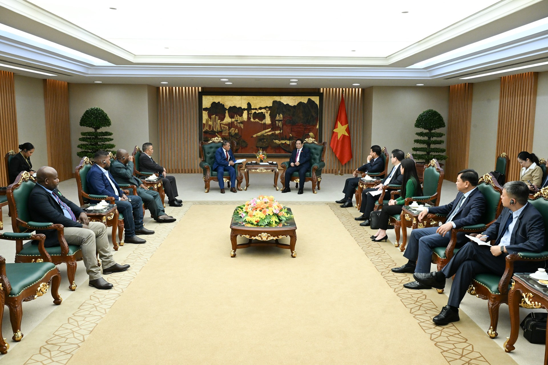 Thủ tướng Phạm Minh Chính và Bộ trưởng Ngoại giao và Ngoại thương Quần đảo Solomon Peter Shanel Agovaka.