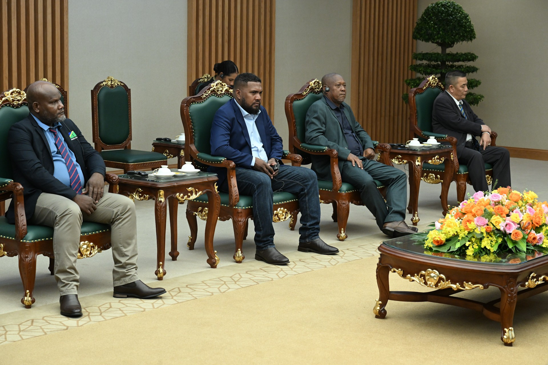 Các thành viên đi cùng Bộ trưởng Ngoại giao và Ngoại thương Quần đảo Solomon Peter Shanel Agovaka tham dự buổi tiếp.