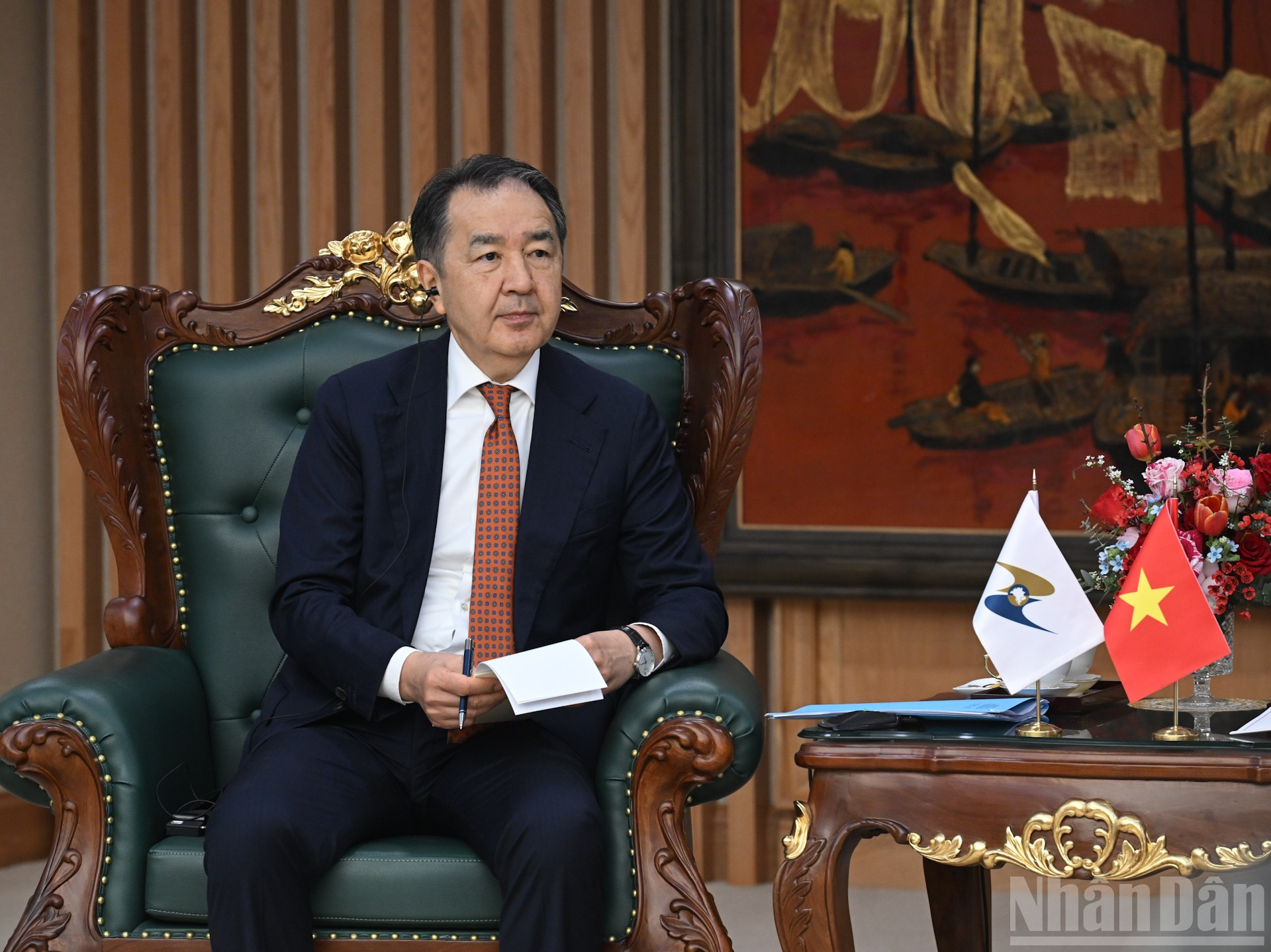Chủ tịch Hội đồng Ủy ban Kinh tế Á-Âu (EEK) Bakytzhan Sagintayev phát biểu tại buổi tiếp.