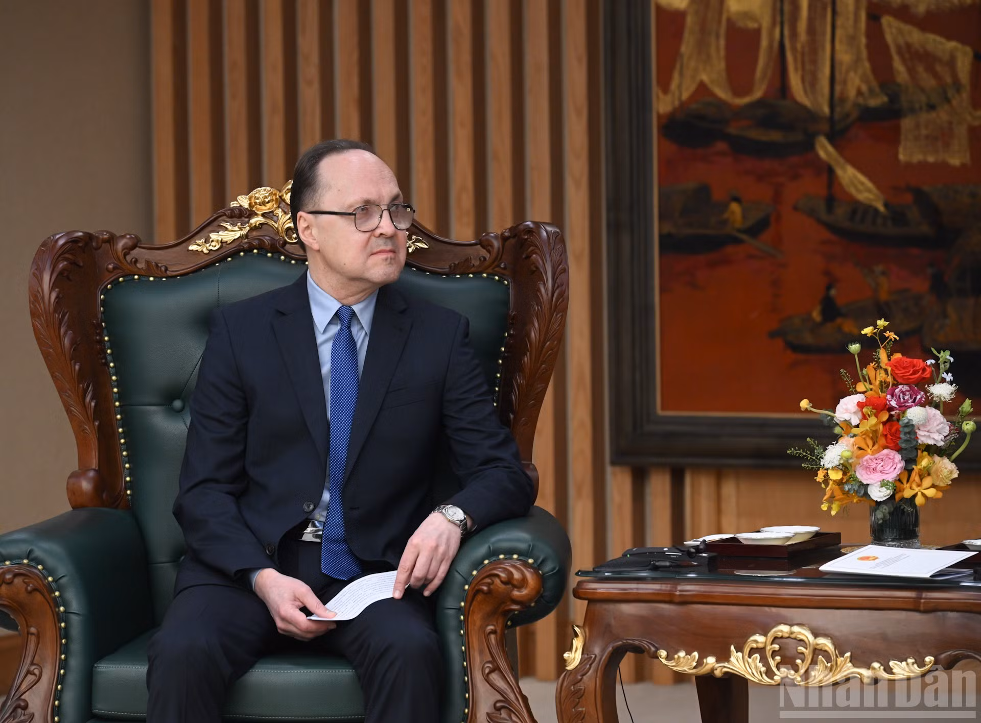 Các thành viên đi cùng Đại sứ Liên bang Nga dự buổi tiếp.