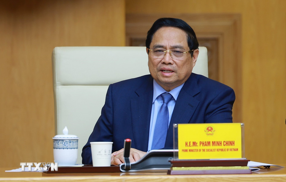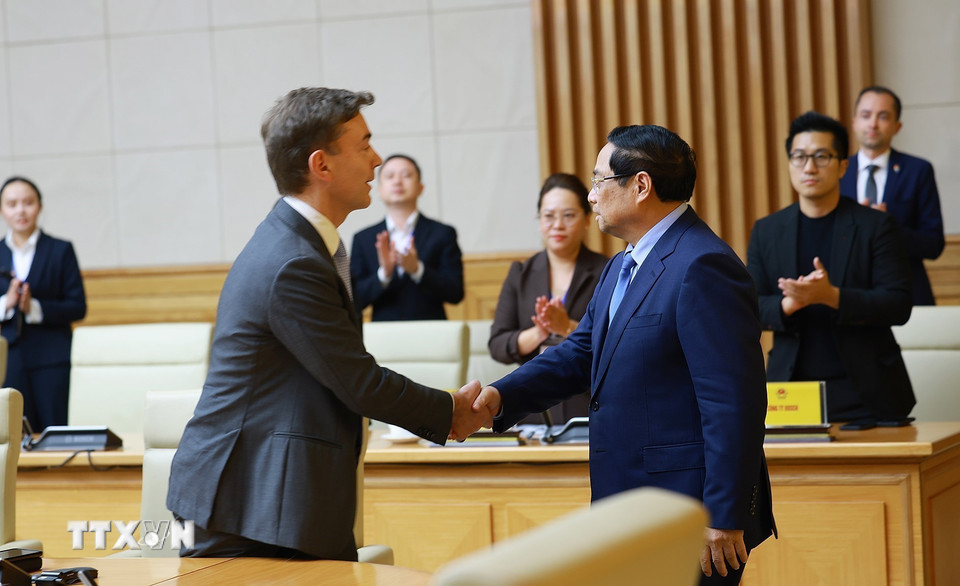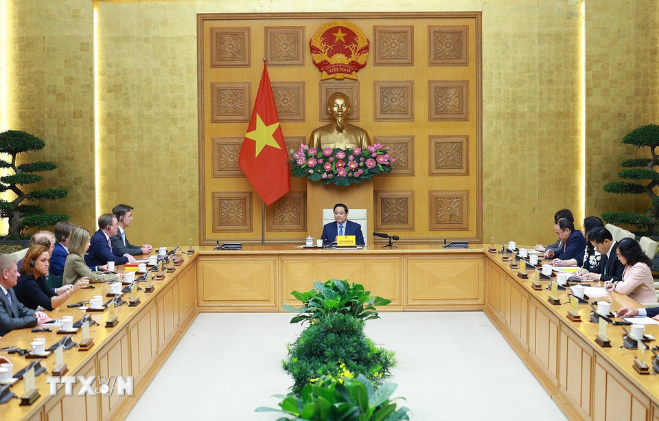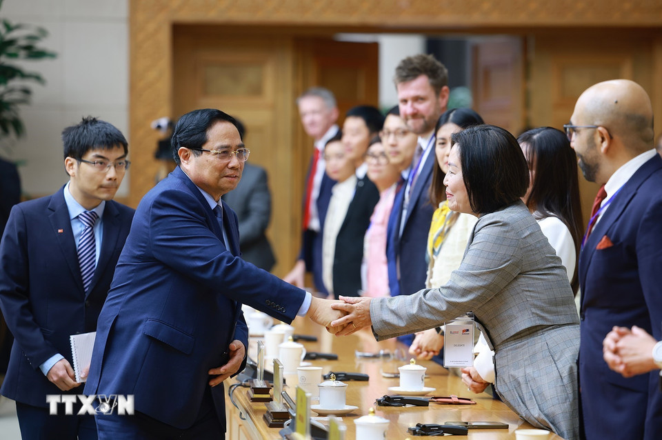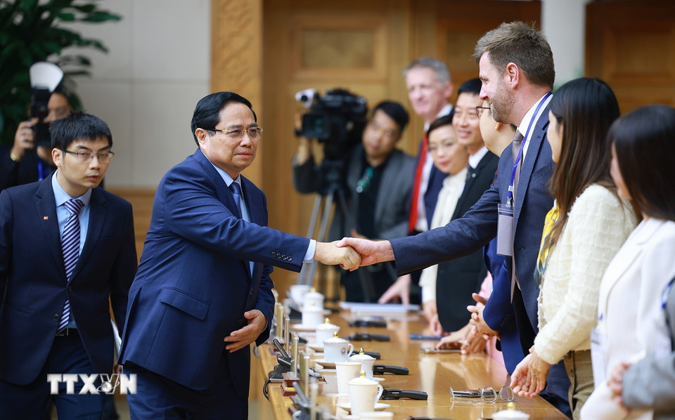 Thủ tướng Phạm Minh Chính tiếp Hội đồng Kinh doanh châu Âu-ASEAN (EU-ABC) và Hiệp hội doanh nghiệp châu Âu tại Việt Nam (EuroCham). (Ảnh: Dương Giang/TTXVN)