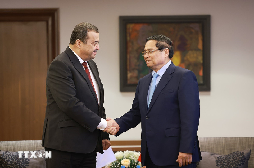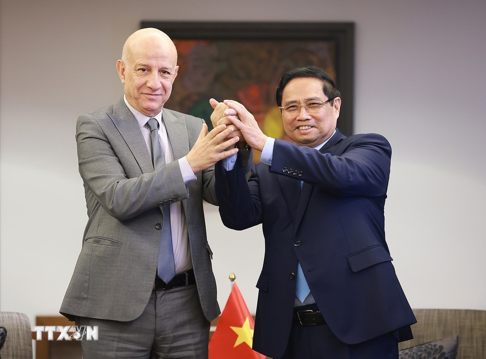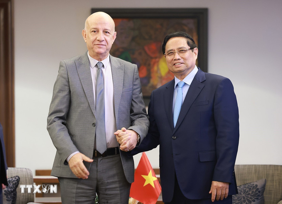 Thủ tướng Phạm Minh Chính tiếp ông Mohamed Arkab, Bộ trưởng Bộ Năng lượng Algeria. (Ảnh: Dương Giang/TTXVN)