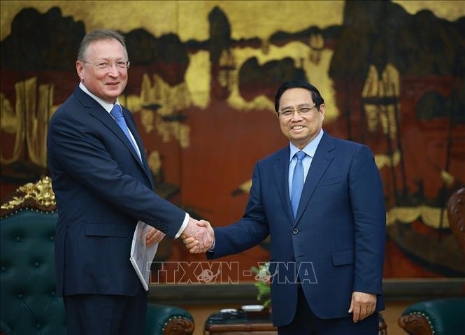 Thủ tướng Phạm Minh Chính tiếp ông Sergei Kudryashov - Tổng Giám đốc Tập đoàn Zarubezhneft (Liên bang Nga). Ảnh: Dương Giang/TTXVN