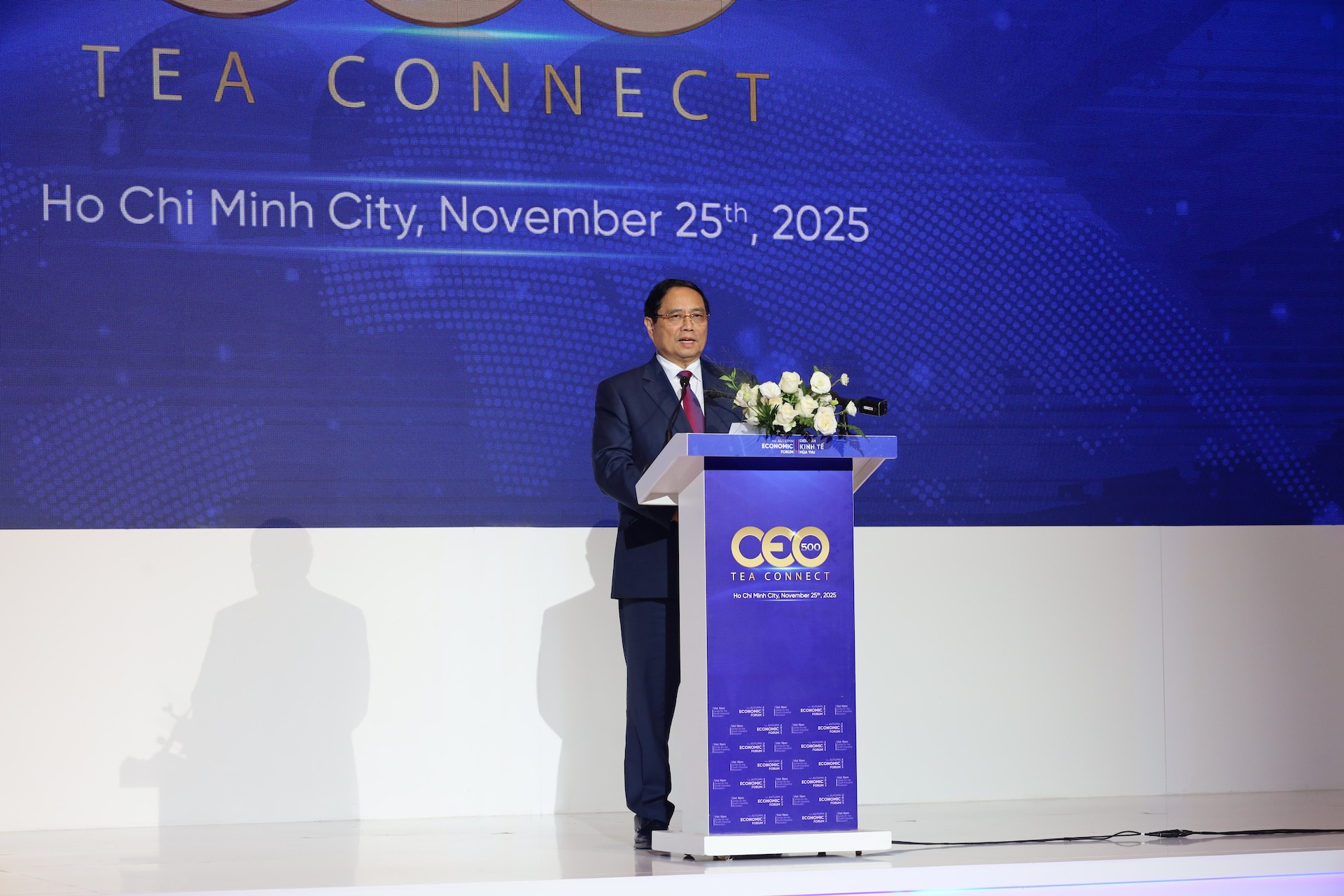 Thủ tướng Phạm Minh Chính phát biểu tại chương trình CEO 500 - TEA CONNECT. Ảnh: BTC