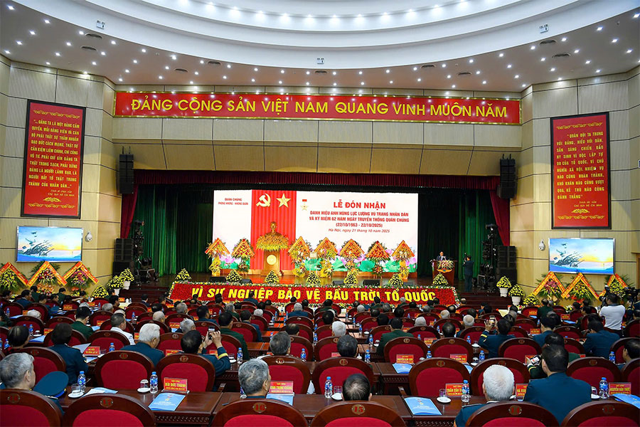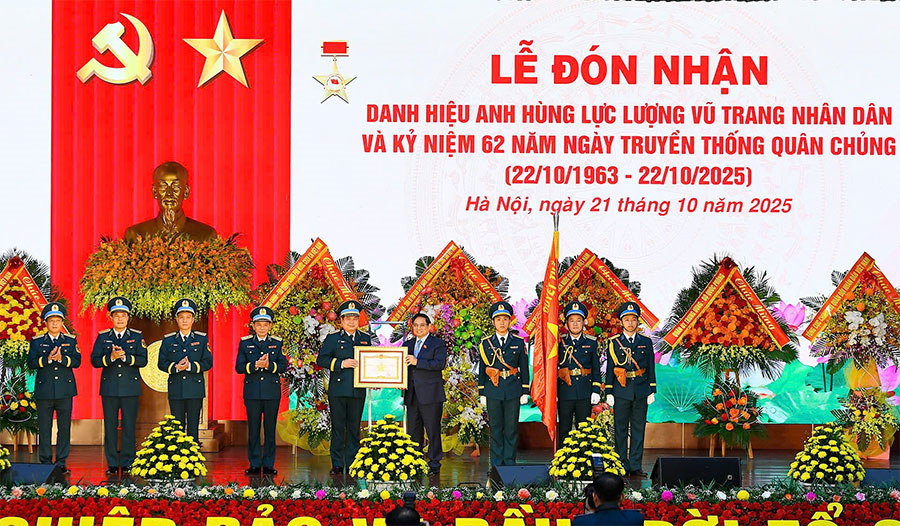 Thay mặt lãnh đạo Đảng, Nhà nước, Thủ tướng Phạm Minh Chính trao danh hiệu Anh hùng Lực lượng vũ trang nhân dân tặng Quân chủng PK-KQ. Phát biểu tại buổi lễ, Thủ tướng Phạm Minh Chính chúc mừng những thành tích, chiến công của Quân chủng trong những năm qua và khẳng định: Trải qua 62 năm xây dựng, chiến đấu và trưởng thành, Quân chủng PK-KQ đã viết nên những trang sử vàng của lòng quả cảm, trí tuệ, bản lĩnh Việt Nam, góp phần làm rạng rỡ truyền thống vẻ vang của QĐND Việt Nam anh hùng và dân tộc Việt Nam anh hùng.