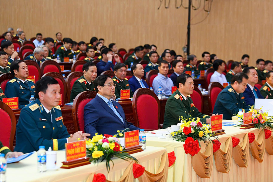 Nhấn mạnh bối cảnh hiện nay đặt ra nhiệm vụ ngày càng khó khăn, thách thức và nặng nề hơn đối với sự nghiệp xây dựng và bảo vệ Tổ quốc, trong đó bảo vệ vững chắc vùng trời, vùng biển là trọng yếu, Thủ tướng Phạm Minh Chính yêu cầu Quân chủng PK-KQ quán triệt sâu sắc các chỉ thị, nghị quyết của trên về nhiệm vụ quân sự, quốc phòng, nhất là Nghị quyết 44 ngày 24-11-2023 về “Chiến lược bảo vệ Tổ quốc trong tình hình mới ”; tập trung xây dựng Đảng bộ Quân chủng trong sạch, vững mạnh tiêu biểu; nâng cao sức chiến đấu, đoàn kết, thống nhất ý chí, hành động; xây dựng đội ngũ cán bộ các cấp có năng lực thực tế và trình độ chuyên môn cao, tinh thông kỹ chiến thuật; có chính sách thu hút, đào tạo, trọng dụng nhân tài, nhất là nhân sự kỹ thuật.