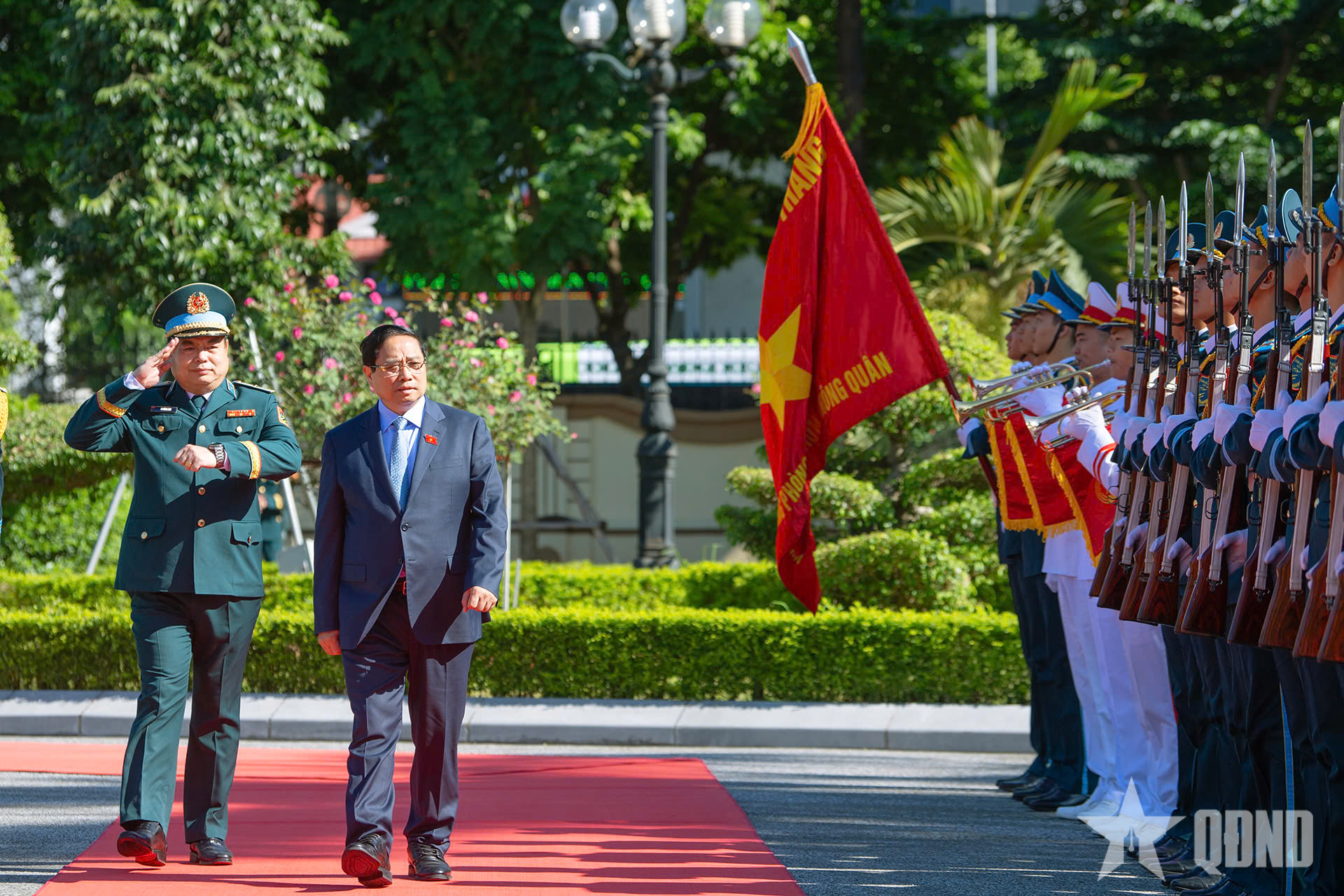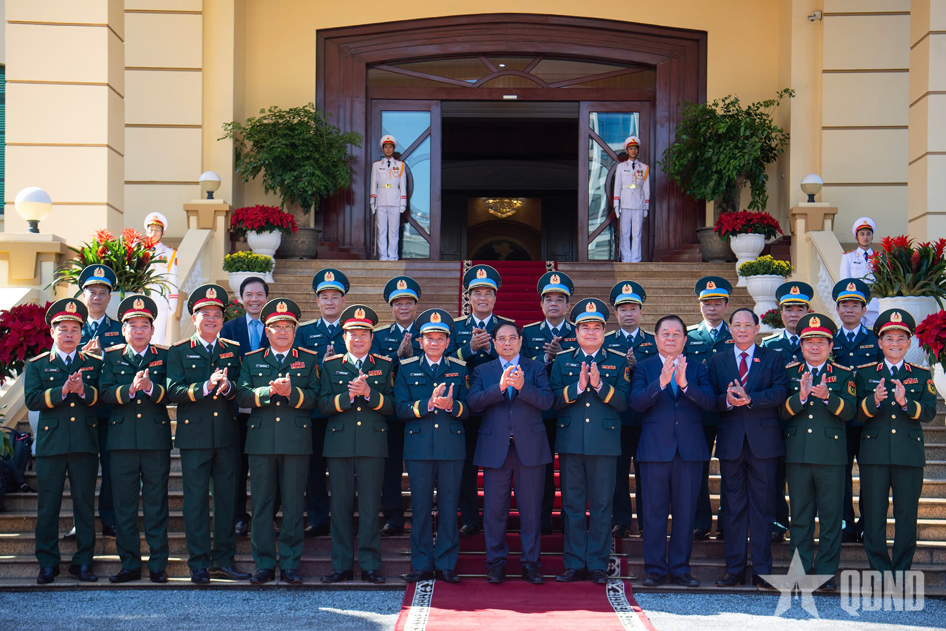 Lãnh đạo Bộ Quốc phòng và Quân chủng Phòng không-Không quân đón Thủ tướng Phạm Minh Chính.