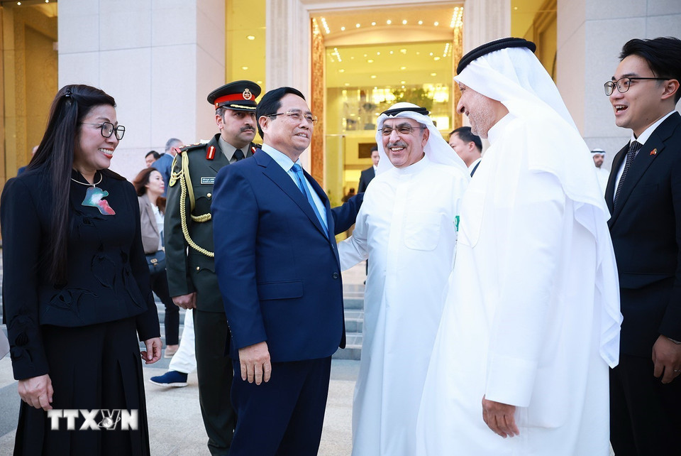 Thủ tướng Phạm Minh Chính và Phu nhân thăm Tòa nhà Di sản văn hóa Arab. (Ảnh: Dương Giang/TTXVN)