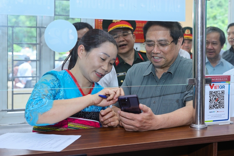 Tại Trung tâm phục vụ hành chính công xã Bát Mọt, Thủ tướng Phạm Minh Chính đã trao đổi với đội ngũ cán bộ, nhiều người dân, tìm hiểu về việc làm thủ tục, đặc biệt là việc tích hợp các thông tin, giấy tờ trên ứng dụng VNeID của người dân và thực hiện thủ tục trực tuyến.