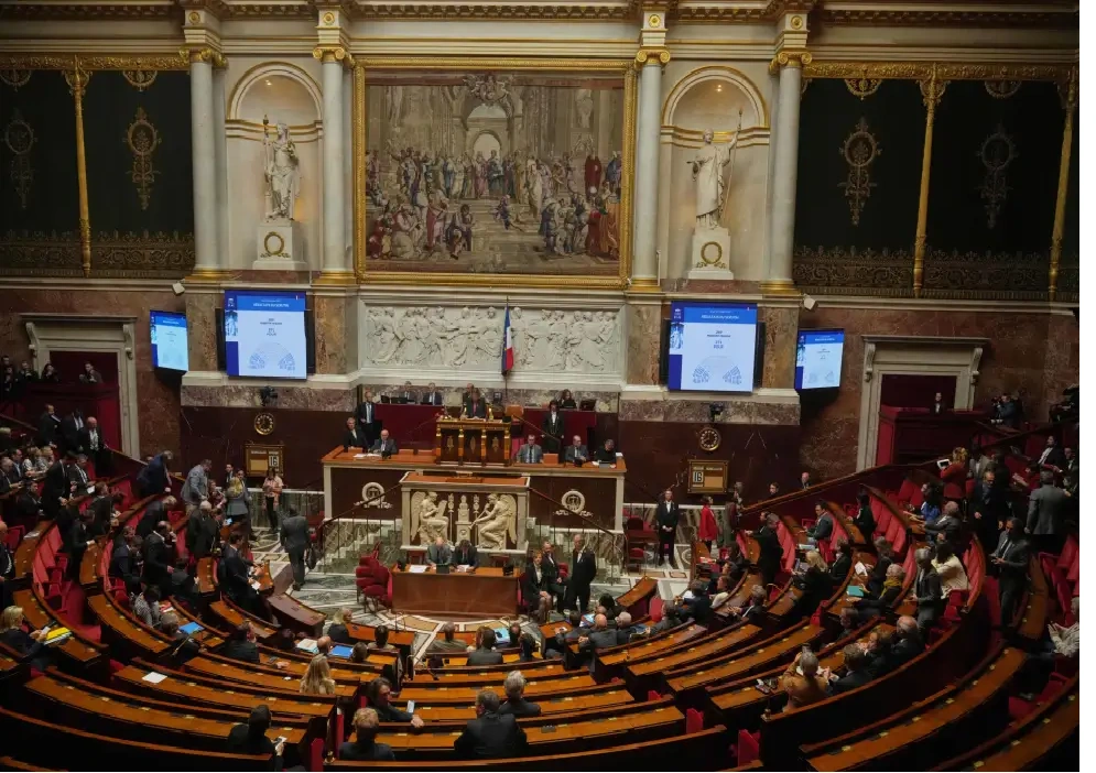 Quốc hội Pháp bỏ phiếu bất tín nhiệm đối với chính phủ Thủ tướng Sébastien Lecornu. Ảnh: AP.
