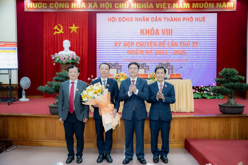 Lãnh đạo thành phố chúc mừng tân Chủ tịch UBND thành phố Phan Thiên Định tại Kỳ họp chuyên đề lần thứ 27, HĐND thành phố Huế khóa VIII