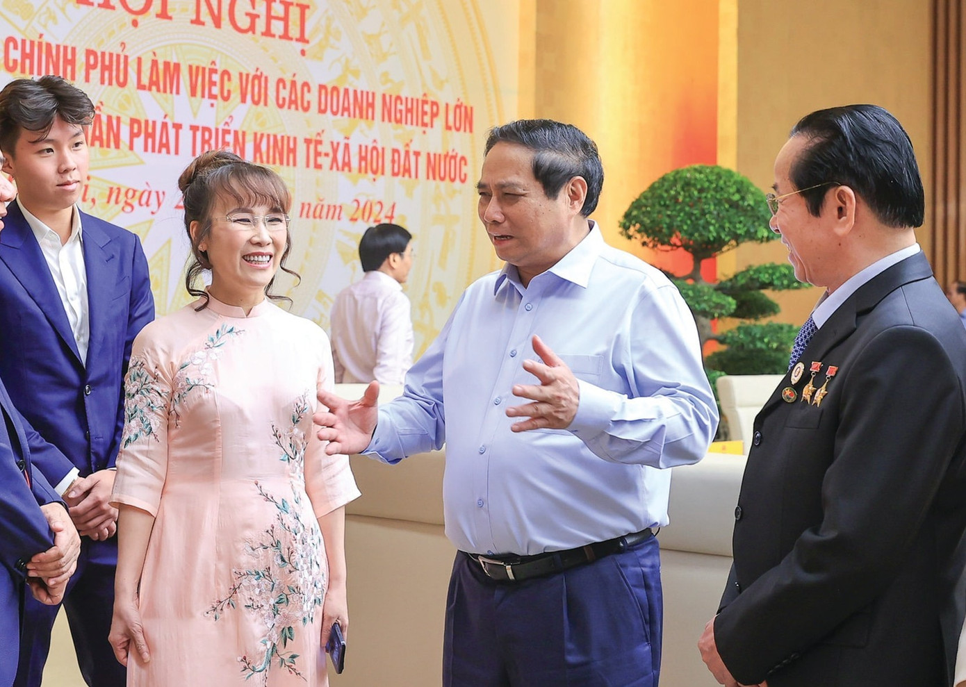 Thủ tướng Phạm Minh Chính tại một Hội nghị với các doanh nghiệp tư nhân lớn.