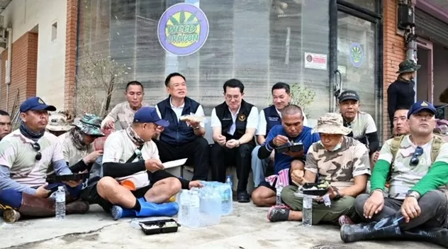 Tại khu vực chợ Kim Yong, ông Anutin ngồi trên vỉa hè dùng bữa cùng Bí thư Thường trực Bộ Nội vụ Arsit Sumpantarat và nhóm làm việc, với suất cơm hộp gồm trứng luộc và cà ri chua.