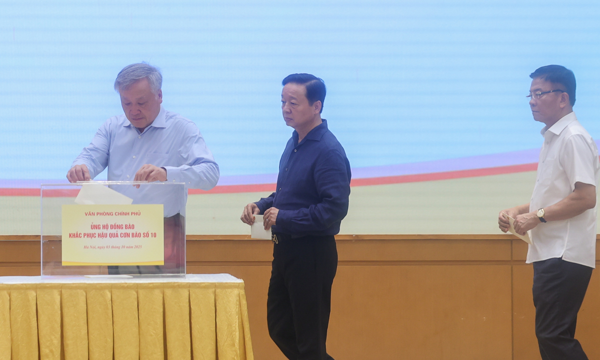 Sáng 3/10, Thủ tướng Phạm Minh Chính cùng các Phó Thủ tướng, Phó Bí thư Đảng ủy Chính phủ, tập thể Văn phòng Chính phủ và cơ quan giúp việc Đảng ủy Chính phủ tham gia ủng hộ đồng bào bị thiệt hại do bão lũ gây ra với tinh thần tương thân, tương ái, tình dân tộc, nghĩa đồng bào, "lá lành đùm lá rách".