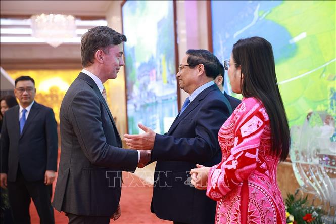 Cho rằng để đạt được những thành tựu đó, bên cạnh nỗ lực tự thân của Việt Nam, không thể thiếu sự đồng hành, ủng hộ và hợp tác quý báu của bạn bè quốc tế, Thủ tướng Chính phủ Phạm Minh Chính thay mặt Tổng Bí thư Tô Lâm và lãnh đạo Đảng, Nhà nước Việt Nam trân trọng cảm ơn các Đại sứ, Trưởng đại diện các tổ chức quốc tế, các đối tác, và gửi lời cảm ơn tới Nhà nước, Chính phủ, lãnh đạo cấp cao và nhân dân các nước đã luôn sát cánh, ủng hộ, “chia ngọt, sẻ bùi”, “đồng cam, cộng khổ” cùng Việt Nam trong quá trình xây dựng và bảo vệ Tổ quốc thời gian qua.
