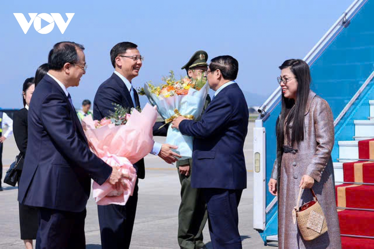 Phó Chủ nhiệm Văn phòng Chính phủ Phạm Mạnh Cường đón Thủ tướng và Phu nhân tại sân bay