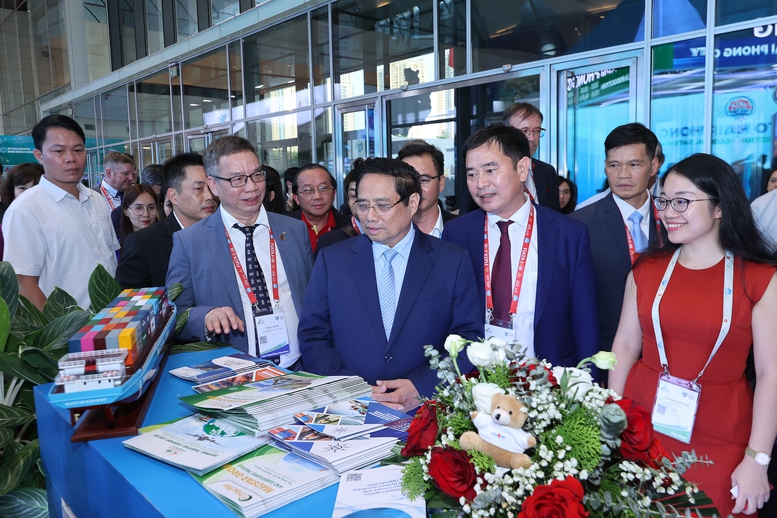 Thủ tướng tham quan các gian hàng trưng bày tại Đại hội - Ảnh: VGP/Nhật Bắc